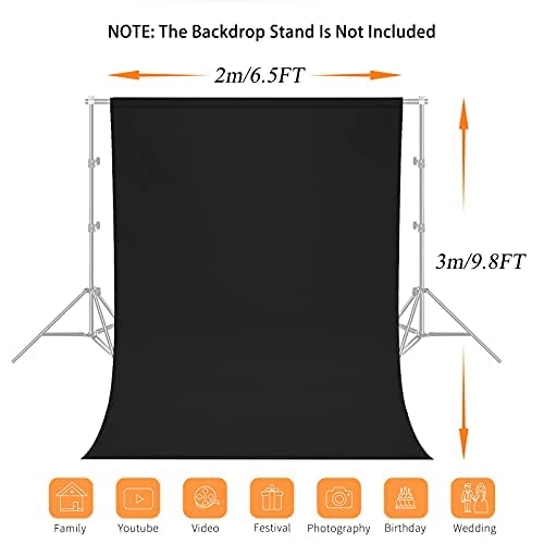 Fondo de Fotografía de 2 x 3M, Fondo Fotográfico de 100% Poliéster con 8 Pinzas Grandes de Estudio, Pantalla Negro para Fotografía, Video, Estudio, Cine, Televisión
