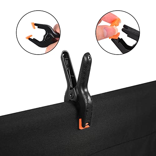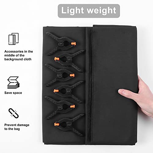 【Fácil de colgar】 6 clips de resorte duraderos + 1 bolsa de almacenamiento+fondo de pantalla verde con diseño de orificio de barra horizontal.Permite montaje de techo de pantalla verde.Puede fijar el fondo con un clip de resorte o usar un orificio de barra horizontal para trabajar con el soporte de fondo : el soporte de pantalla verde no está incluido en este paquete)