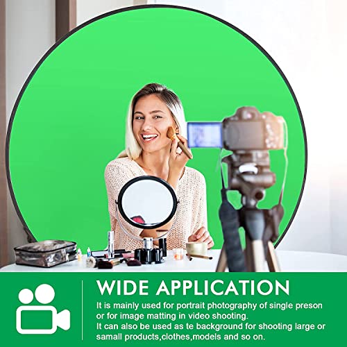 【Plegable y portátil】Esta placa de fondo portátil mide 145 cm de diámetro cuando está desplegada. Se puede plegar hasta un diámetro de 50 cm. Solo se necesitan 5 sencillos pasos para plegarlo en un paquete pequeño, que es muy conveniente de llevar con una bolsa con cremallera. El diseño plegable garantiza que la pantalla verde esté libre de arrugas, polvo o defectos, lo que hace que la incrustación de croma sea muy fácil.