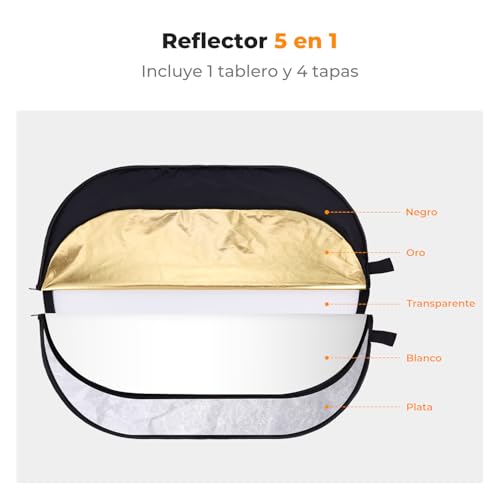 K&F Concept 5 en 1 Reflector de Luz para Fotografía 60x90cm Difusor Ovalado Reflector Plegable para Fotografía de Retrato Foto Selfie Iluminación Exterior con Bolsa de Transporte