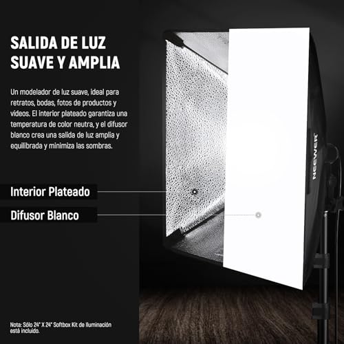 24″X24″/60x60cm Softbox: Softbox difunde la luz y le da perfecta iluminación uniforme cuando se necesita para las mejores tomas posibles. Con socket E27, puede conectar directamente bombillas, lámparas fluorescentes, o flashes esclavos.