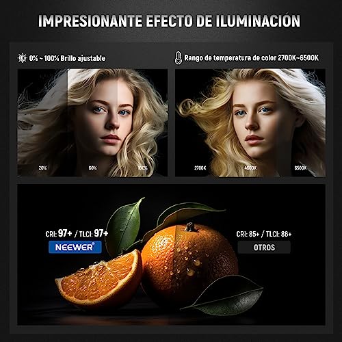 【2700K-6500K CCT y 12 Efectos de Escena】 Proporciona 2 modos de luz: modo CCT y modo de escena. Ofrece una temperatura de color de 2700K-6500K, un rango de atenuación de 0-100 % y opciones de luz diurna o más cálidas para su obra maestra creativa. 12 escenas de iluminación personalizadas brindan una iluminación realista en el rodaje, lo que le ahorra una tonelada de tiempo de posproducción para el trabajo de efectos especiales. Alto CRI 97+ y TLCI 98+ aseguran la reproducción precisa del color