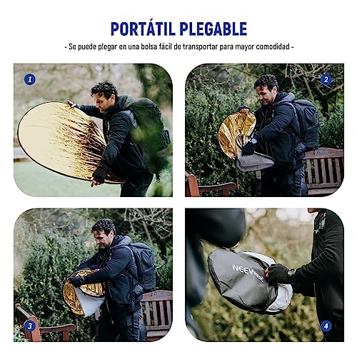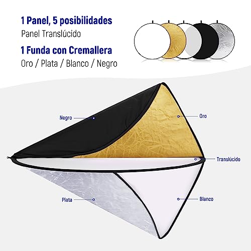 NEEWER Reflector Luz de 43in/110cm Difusor de Luz 5 en 1 Multi Disco Plegable con Bolsa Translúcido, Plateado, Dorado, Blanco y Negro para Iluminación de Fotografía de Estudio y Exteriores