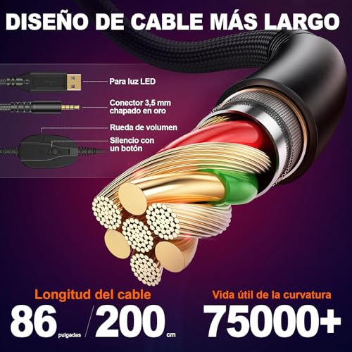 🎧Control de volumen con un botón: los auriculares Krysenix Gaming cuentan con un cable trenzado de 89 pulgadas de alta resistencia y resistente a los enredos. También cuenta con un control de volumen giratorio y una función de silencio de micrófono de un botón. El botón de volumen de la rueda de desplazamiento en los auriculares de PC, junto con el icono del micrófono para silenciar rápidamente, proporciona un control conveniente sobre el chat y el audio del juego.