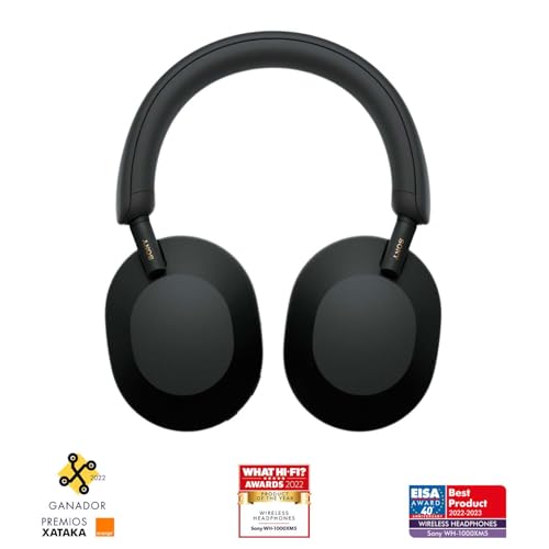 Sony WH-1000XM5 Noise Cancelling, Auriculares de diadema Bluetooth, Llamadas cristalinas, Hi-Res, 360 Reality Audio, 30 h de batería, Carga rápida, Google Assistant, iOS, Android – Negro