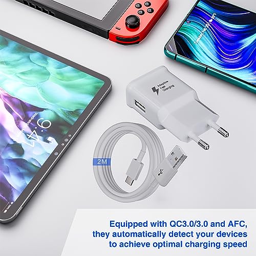 Cargador con Cable de Carga de 2 m Compatible con Samsung Galaxy A13 A14 A20 A20e A23 A32 A33 A34 A40 A52 A53 A54 5g S8 S9 S10 S10e M54 M53 M34 M33 M14 M52 M51 S21 Plus, Movil Cargador Carga Rapida