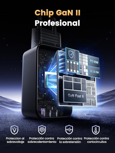 [ Carga Ultrarrápida ] Este cargador USB C con tecnología GaN ofrece una carga máxima de 65W, suficiente para cargar tu MacBook Pro de 13″ a máxima velocidad. La energía se distribuirá entre los 3 puertos para garantizar una mejor carga al conectar varios dispositivos.