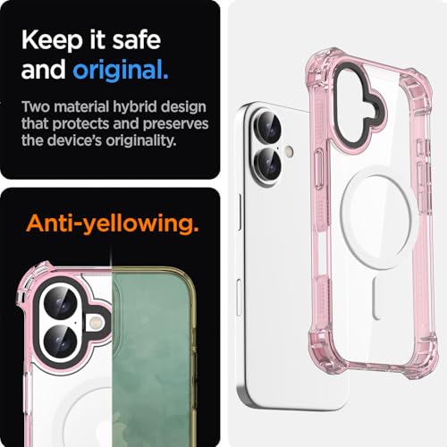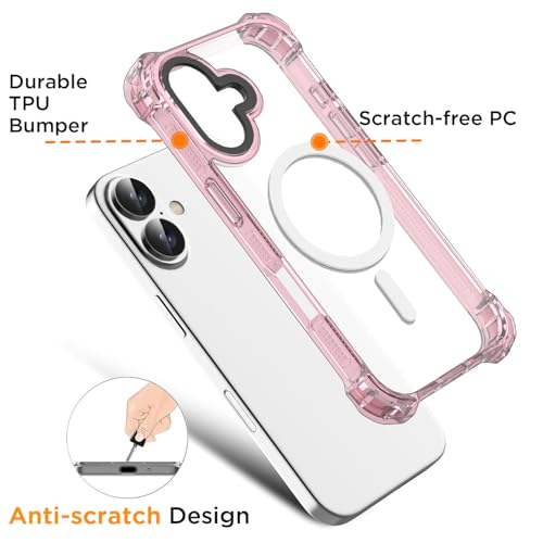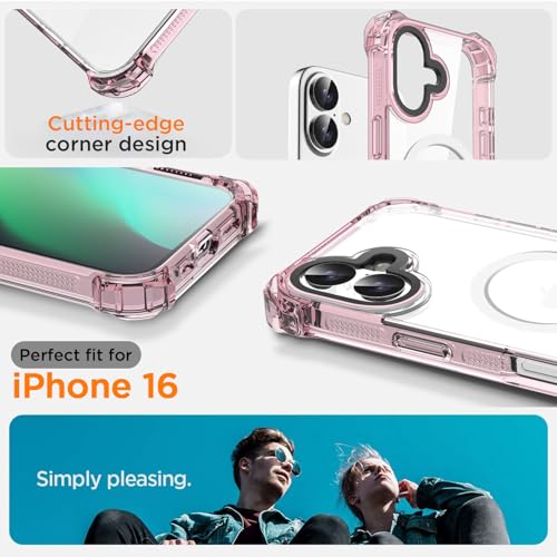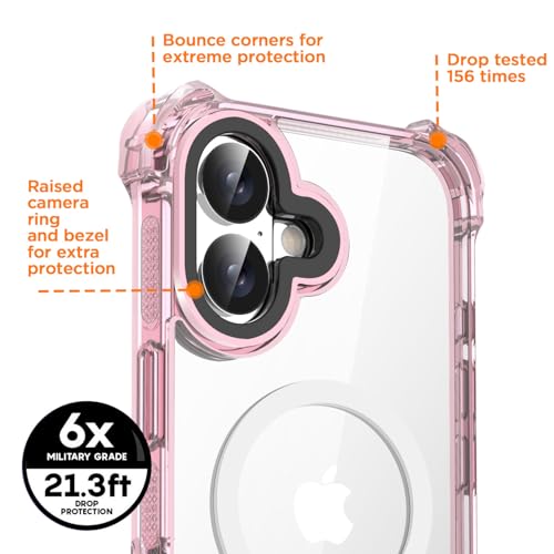 AICase Bounce Funda para iPhone 16 Transparente Rosa Compatible con MagSafe, A Prueba de Golpes Impacto [21.3 FT Protección Militar contra Caídas] Funda Magnética Anti-Rasguños con mag Safe