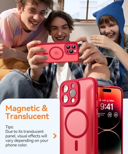 CANSHN Funda Magnética para iPhone 14 Pro(6.1 Pulgadas), Compatible con MagSafe, [Protección Total de La Cámara] Carcasa Fondo Mate Translúcido,Rojo