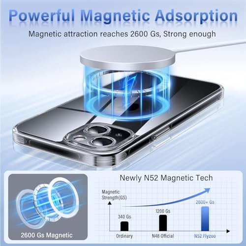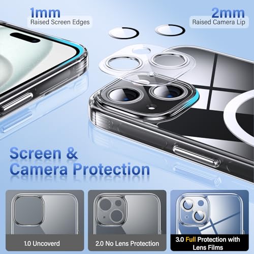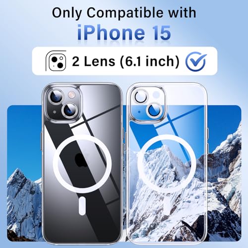 Funda Magnética Transparente para iPhone 15 [con Protector de Lente de Cámara] [Anti-Amarillo] A Prueba de Golpes, Resistente Arañazos, Silicona Bumper PC Back, 6,1″, Transparente