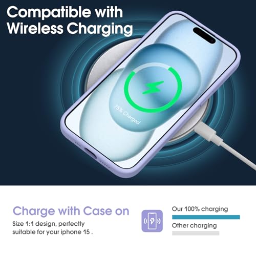 Supdeal Funda de Silicona Líquida para iPhone 15, [Protección de Cámara] [Cubierta de Microfibra] [Protección de 4 Capas], Carcasa de Agarre Ultrafina y Cómoda, 6,1″, Púrpura