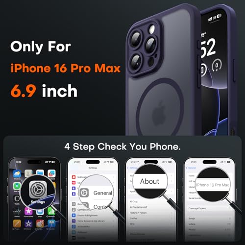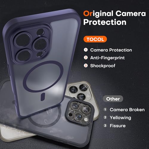 TOCOL Funda para iPhone 16 Pro MAX, Funda Magnética para iPhone 16 Pro MAX 6,9 Pulgadas [Protección Lente Cámara] [Protección Militar] Translúcida Mate Trasera, Púrpura Medianoche