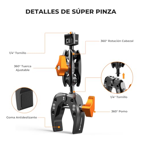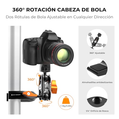 K&F Concept Brazo Mágico con Súper Abrazadera, Magic Arm con Super Clamp Pinza y Cabeza Esférica de 360° Compatible con Cámara/Teléfono Móvil/GO PRO/DJI Action, Carga Máxima:3KG