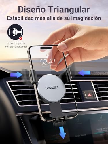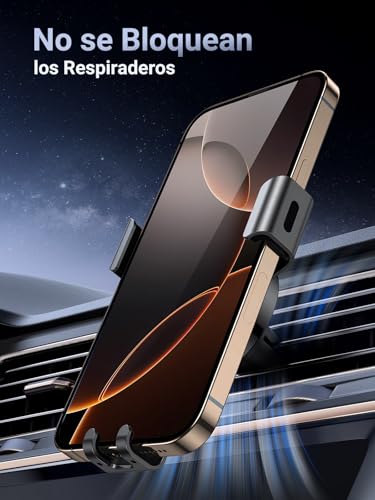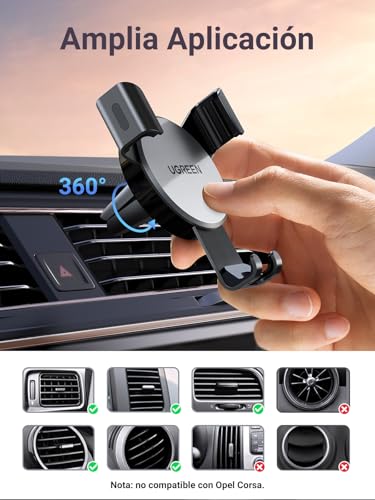 UGREEN Soporte Móvil Coche, Suporte Telemovel Carro por Gravedad para Ventilación, Car Phone Holder Universal para iPhone 16/15/14 Plus Pro MAX, Xiaomi/Redmi Note 11, Galaxy S24 Ultra S23 S22, Gris