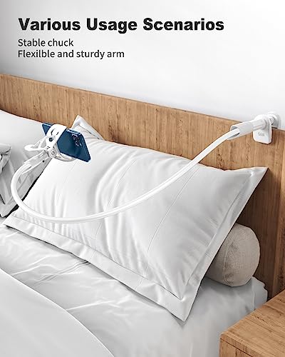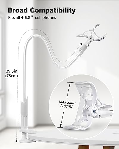 SAIJI Soporte para teléfono Gooseneck, Soporte movil Cama Celular para Cama, Soporte de Brazo Perezoso 360, teléfonos móviles Compatible con iPhone, Samsung, Dispositivos de Pantalla de 4″-7″ (Blanco)
