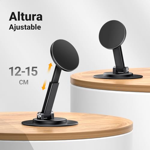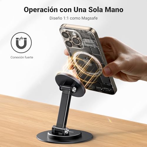 UGREEN Soporte Magnético para iPhone de Mesa, Stand de Escritorio Giratorio y Plegable con 1 Anillo de Metal, No Admite Carga, Negro