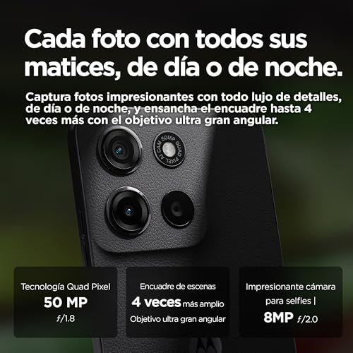 Motorola Moto g15 12GB (4GB+8GB RAM Boost)/128GB Gris, España, Pantalla de 6,72” FHD+, Sistema de cámaras de 50 MP y Objetivo Ultra Gran Angular, Batería 5200 mAh, Carga TurboPower, Cuero Vegano