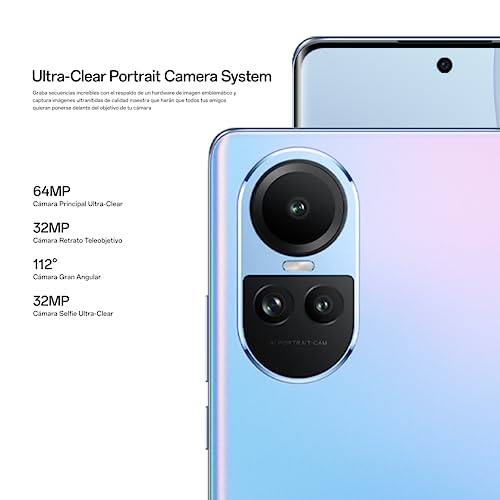 OPPO Reno10 5G – Smartphone Libre, 8GB+256GB, Pantalla AMOLED 6.7″, Cámara 64+8+32 MP, Android, Batería 5000mAh, Carga Rápida 67W – Azul