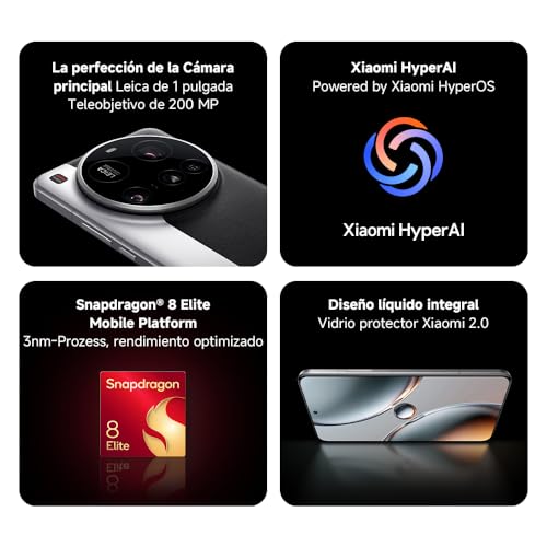 Xiaomi 15 Ultra – Smartphone de 16+512GB, Lente óptica Leica Summilux, Snapdragon 8 Elite, Pantalla AMOLED WQHD+ de 6,73″ 120 Hz, HyperCharge de 90W, Cargador no Incluido, Plata cromada (Versión ES)